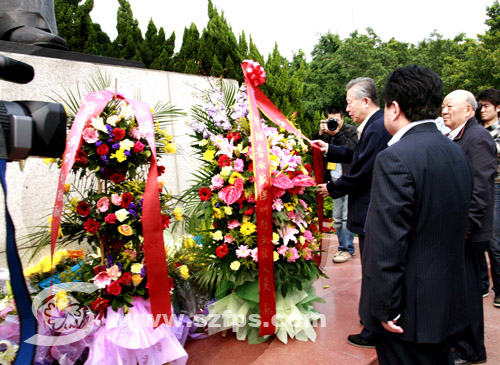 春日的莲花山上,草木葱茏,鲜花绽放。在小平塑像前,傅庚辰、徐沛东、吴雁泽等音乐家缓步走上台阶,向这位深受全国人民爱戴和广大音乐家敬重的伟人敬献了花圈。他们走到塑像前,在花篮前驻足,凝望塑像,向塑像三鞠躬,表达对一代伟人的崇敬与热爱之情。音乐家们还走近花篮,仔细整理花篮上的红色缎带,缎带上写着意味深长的献辞——“永远的小平”。