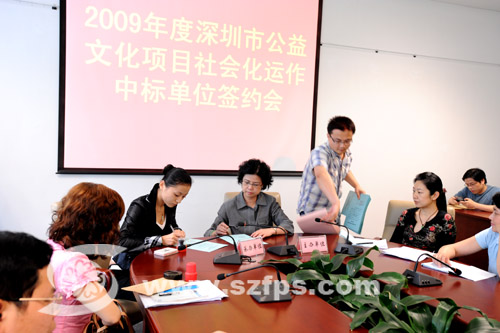在昨天举行的签约会上,市文化局负责人对入选单位所需承担的承办工作作了具体部署,要求他们认真办好签约的各项文化项目,为推进深圳市的公益文化事业的繁荣做出贡献。据了解,为保证活动的质量,市文化局将组成评审组监控承办活动的全过程,不符合要求者将取消其承办资格并追究责任。