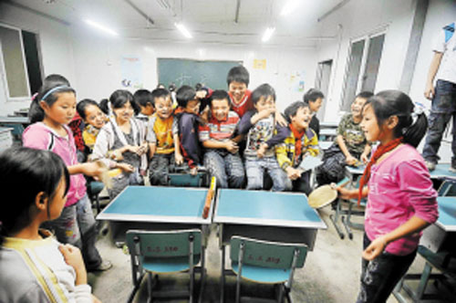 面对未来的美好生活,北川中学的学生露出了久违的笑脸。