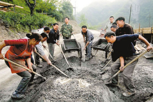 在大禹故里,大家携手抗灾自救,劳动场面热火朝天。