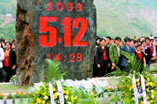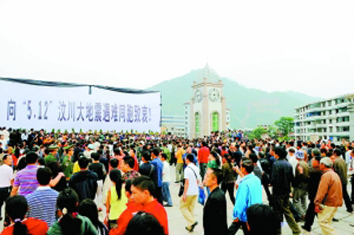 5月12日,四川省绵竹市在汉旺镇钟楼前举行隆重的祭奠仪式,向2008年5月12日汶川大地震遇难者致哀。 |