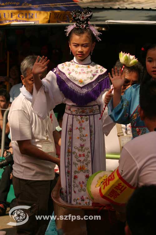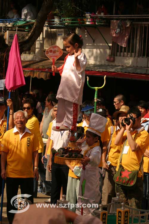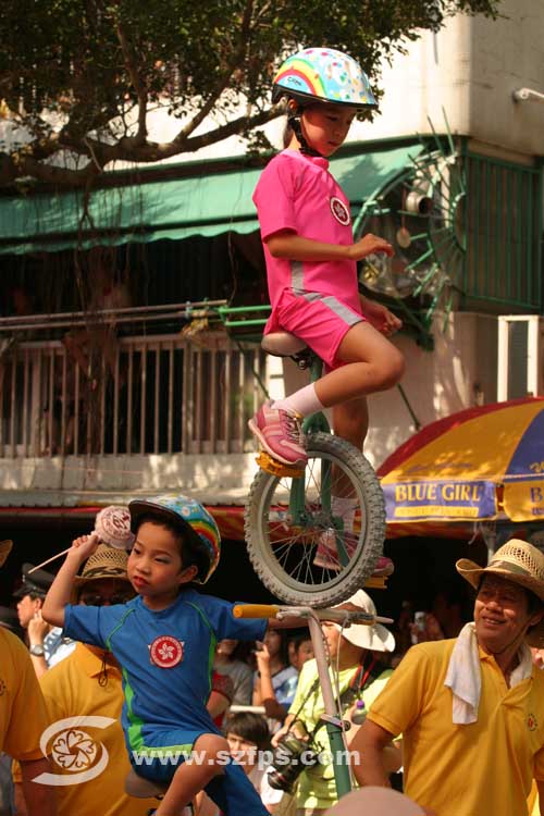 适逢今年东亚运动会,不少飘色都以此为题,有小朋友穿上运动服踩单车或扮演乒乓球手。也有小朋友穿上消防员制服,纪念两位在旺角嘉禾大厦殉职的消防员。