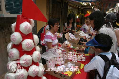售卖平安包精品的,今年是生意最好的一年,日前已有数万元生意额,平安包造型的印章和棉花糖合共近万件存货已当日全部售罄,相信是因人类猪流感,令长洲成为香港市民避难的地方所致。