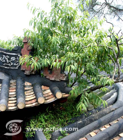 2.何仙姑家庙正堂右侧瓦脊上这棵桃树人称“仙桃”。仙桃相传是何仙姑师傅麻姑献寿的仙桃,故又称“麻姑仙桃”。它虽生长在缺土少壤的瓦背屋脊上却依旧枝叶繁茂。据了解,2003年,对仙桃进行义卖,最高一颗仙桃竞投价为5万元,此后价格逐年攀高,2007年更有一颗卖出13.8万元的天价。
