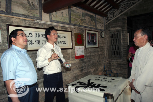 6.书法家常福居士为报德祠泼墨挥毫。左为增城旅游局长史寿山先生,右为报德祠主持杨克明师傅。