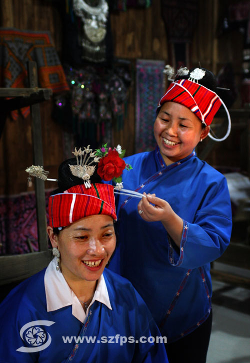 苗族喜爱刺绣就像喜爱唱歌一样,几乎视若生命的一部分。苗族姑娘好刺绣是与传说里的苗民南迁联在一起的,说是有位叫兰娟的女首领为了记住迁徙跋涉的路途经历,想出了用彩线记事的办法,过黄河绣条黄线,过长江绣条蓝线,翻山越岭也绣个符号标记,待最后抵达可以落脚的聚居地时,从衣领到裤脚已全部绣满,从此,苗家姑娘出嫁都要穿上一身亲手绣制的盛装,为的是缅怀离去的故土,纪念英勇聪慧的前辈,同时也为了承继前辈流传下的这份美丽,不忘祖业,激励后人。