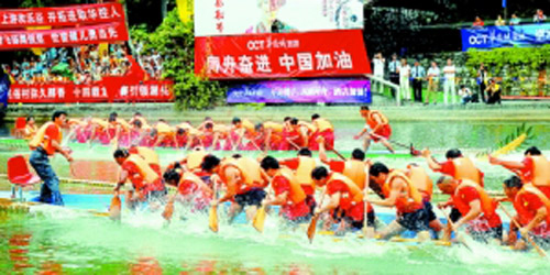 “五月五,过端午,划龙舟,敲锣鼓……” 为迎接一年一度的端午佳节,华侨城昨日在锦绣中华·民俗村的翠湖上举行了激动人心的龙舟赛,近20家知名企业的30余支男、女龙舟代表队参加了比赛,为现场观众留下了一幕幕难忘的画面。