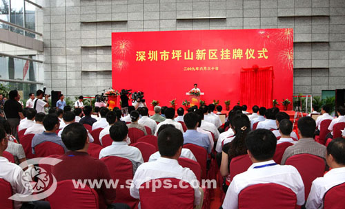 深圳市坪山新区今日在大工业区正式挂牌, 这是继光明新区之后深圳设立的第二个功能区,也是深圳行政体制改革的一个重大进展。