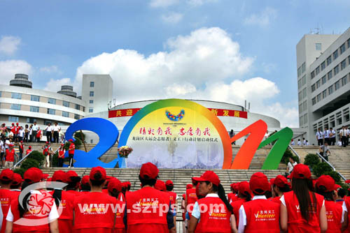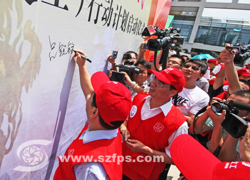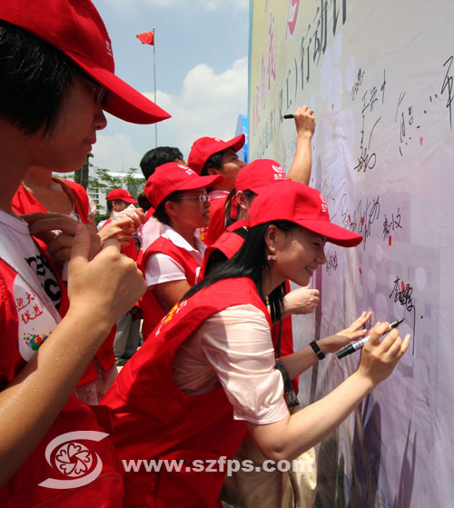 市区领导在龙岗区大运志愿者在启动仪式上签名