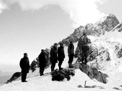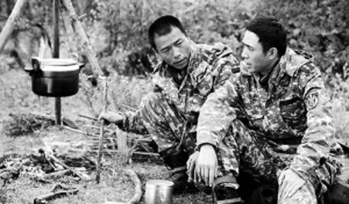 “一部与大自然同生同死的大爱之作;一部对自我的拷问几近疯狂、对他人的热爱几近痴迷之作;一部关于领土、爱、信仰和人的力量震撼之作。”在《兵峰》的宣传海报上这样写着。“确实如此。”贾一平肯定地说,“在‘兄弟班’的征途中,洪水、大风口、雪崩区、泥石流、断崖、暴风雪、冰山达坂等恶劣的自然条件已经是家常便饭,此外他们还遭遇了与异国武装巡逻队的对峙、拯救异国牧人等突发性事件。在这场以拯救朗措为名义的行动中,‘兄弟班’不断陷入困境和绝境,又不断战胜困境和绝境。这部电视剧被定为惊险灾难类的剧集,就在于此。”去年11月,本报记者前往《兵峰》的拍摄地丽江玉龙雪山探班,高原反应已让许多在场游客纷纷叫苦,剧中那些自然灾害就更加难以想像了。