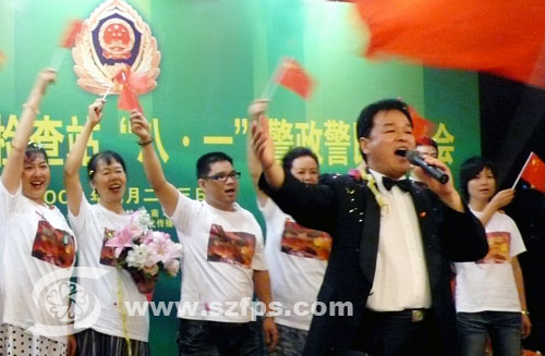 7月24日晚,广东省公安边防总队深圳经济特区南坪检查站举办八、一军民联欢晚会。受检查站全体官兵之邀请,深圳原创歌曲《盛世中华》创作团队和爱心合唱团首次进入部队慰问义演,军民一家亲渔水情,演出团队将盛世中华的歌声传送到军营,把歌声献给可爱、可亲、可敬的人民子弟兵,与全体官兵一起欢庆八、一建军节, 歌声唱出“悠悠的汉风, 盛世的大唐 ,古老的东方, 是龙的家乡 ,历尽磨难 ,中华儿女志气刚 ,一路走过千秋的洗礼, 风雨中挺起脊梁 ,五星红旗迎风飘扬 ,春雷给你新生力量 ,改革开放吹响号角, 中华张开了腾飞的翅膀,一路走过千秋的洗礼,风雨中挺起脊梁 ,世界屋脊架起天路 ,北京奥运书写辉煌,神舟自由在太空翱翔 三峡锁定了苍茫 ,人民安居乐业, 祖国昌盛安邦 ,爱心将我们凝聚一起 ,苦难磨练我们更加坚强 ,人民安居乐业,祖国昌盛安邦盛世中华,国富民强,盛世中华,扬帆远航” ,歌声优雅婉转、高亢激昂,激发了特检官兵的爱国热情,更加坚定了官兵守护特区安宁的决心,官兵们亲切感受到演唱团队用歌声感恩祖国,颂扬祖国。
