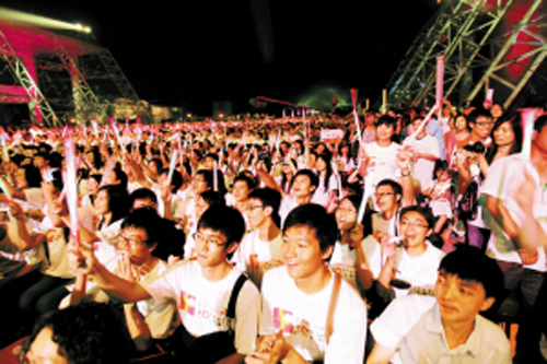 昨晚,2011年深圳大运会两周年倒计时文艺晚会在市民中心广场举行。