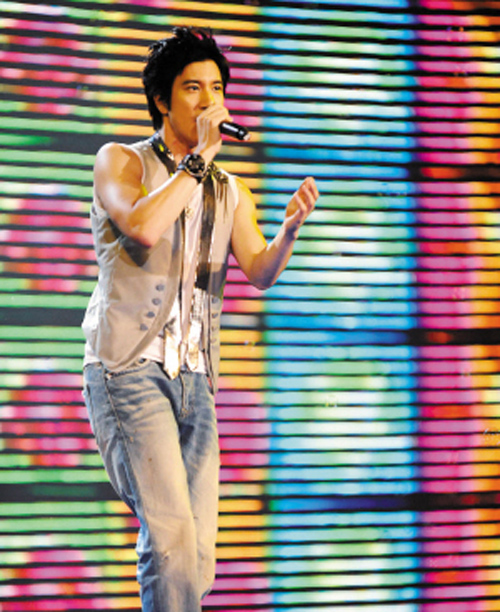 紧随李云迪登场的是王力宏,两人用力地双手击拳,也将现场的气氛像接力棒一样彼此传递。王力宏以两首节奏非常强劲的流行曲将全部观众点燃。荧光棒、激光束交相辉映,是对大运会现场助威的最好演练。