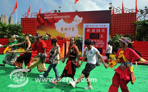 为了感恩和庆祝祖国60华诞生日,锦绣中华景区将通过电话、网络等报名方式,面向全国征集名字中含有“国庆”的国内游客,于国庆当天举行“万名国庆大狂欢——我与祖国共庆生”活动,举行“万名国庆升国旗,唱国歌”、“万名国庆共祝福”、“万名国庆写国庆”、“ 国庆名人面对面”等系列活动。