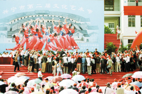 昨日由兴宁市委市政府、广东省摄影家协会主办的兴宁市第二届艺术节在兴宁市文化广场举行了开幕仪式。此次艺术节的主题千年客邑·绿色兴宁兴宁历史悠久的传统舞狮、舞龙、婚俗、杯花舞表演吸引了广州、深圳、东莞、梅州等地摄影家和摄影爱好者近400人的眼球。