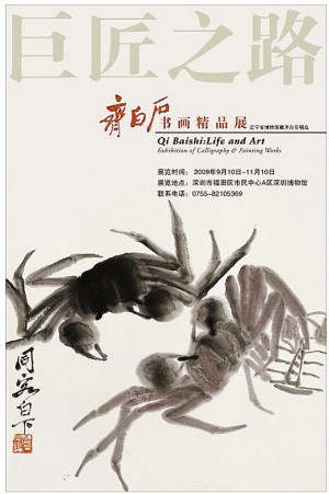 | 齐白石书画展今天开幕   (摘自深圳商报 记者刘莎莎 )2009年9月10日 今天,由深圳博物馆和辽宁省博物馆共同主办的“巨匠之路——辽宁省博物馆馆藏齐白石精品书画展”在深圳市博物馆新馆开幕。