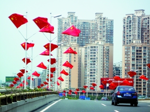 据了解,为迎接新中国成立六十周年,市灯光环境管理中心工作人员将在9月28日之前,把3200面五星红旗悬挂在市民中心周边、滨河路、皇岗路、红岭路、沙河西路等路段。由于今年国庆假日期间恰逢中秋节,为营造“双节”喜庆气氛,市灯光环境管理中心还将在深南路、滨海大道、人民南的路灯杆上悬挂1400盏灯笼,我市各区也将选择部分重点路段,在路灯杆上悬挂灯笼。据介绍,红灯笼将悬挂到国庆节后的高交会期间,目前暂定已经悬挂红灯笼的路段,不再悬挂国旗。