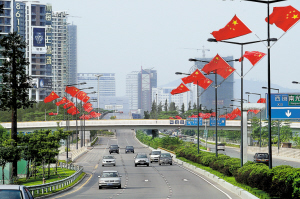“五星红旗,我为你骄傲,五星红旗,我为你自豪”,现在,你行进在南山区的主要道路上,放眼望去,道路两旁,一面面鲜艳的五星红旗迎风招展,那种自豪、那种骄傲会油然而生。为喜迎新中国60华诞,宏扬民族精神,增强国家意识,激发爱国热情,南山区委区政府特意在区内主要道路上悬挂了6000面国旗,让整个城区成为国旗的海洋。