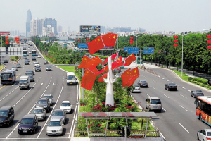 为迎接新中国成立60周年国庆,南山区委区政府统一部署,在南山区各主要市政道路、口岸、广场等公共场所悬挂近万面国旗。据南山区有关部门负责人介绍,这次南山区悬挂的国旗是历年来最多的一次,他们严格按照《国旗法》等有关法律法规制作出标准国旗,并根据以往悬挂经验,摸索出国旗悬挂既庄重规范,又平整美观的悬挂方法,这样才能更好地弘扬民族精神,增强国家意识,激发广大市民的爱国热情。