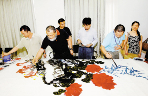 面向大海,笔墨颂情。昨天,来自广东画院的三十多位知名岭南派画家齐聚深圳市龙岗区的大鹏湾,用一幅幅气势磅礴、色朴意高的国画作品,庆祝中华人民共和国60华诞,讴歌改革开放的激情岁月。