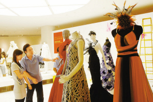 观众兴趣盎然地观赏深圳年轻设计师的服装设计作品。 |