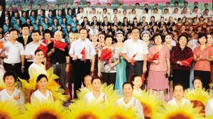 市、区领导与演职人员、现场观众齐声高唱《歌唱祖国》。