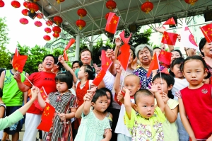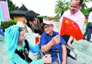 昨天,来自台湾78岁的蔡老先生在深圳感受节日的欢乐气氛