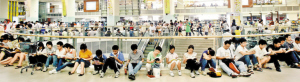 节假日书城人多却不嘈杂。书城台阶上、书架旁都坐满了读者。不同年龄不同爱好的人,在自己喜爱的图书区域,选择自己想看的图书,或席地而坐,或依靠在墙角、柜台边,忘情地进入属于自己的书中世界。书城调节了合适室内温度,让人们看书选书更加舒服;通过电脑查询图书的存量和具体摆放位置,挑选图书更加方便准确;室内设有大屏幕导购,畅销书和热卖书一目了然。