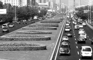 高标准的道路绿化改造行动。(资料照片)本报记者 廖万育 摄