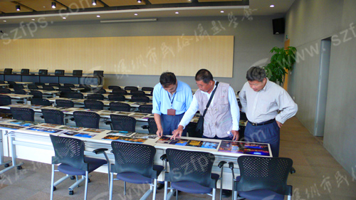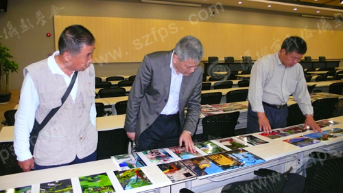 现场评选(二) 左起一:汪秦生、王钻、刘对现