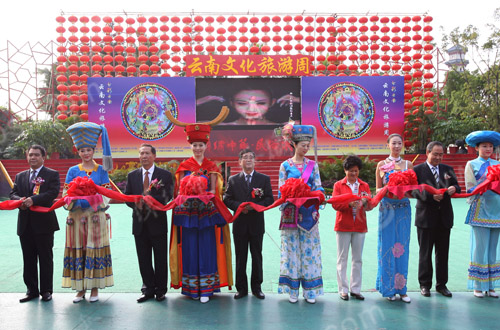 12月12日,“云南文化旅游周”启动仪式在锦绣中华·民俗村百艺广场隆重举行,为期五天的“云南文化旅游周”正式拉开帷幕。活动期间,“七彩云南”歌舞展演、云南特色产品展(普洱茶、玉器)、云南非物质文化遗产展、云南旅游摄影图片展、云南书画展等独具云南风情的展览演出活动缤纷登场,全方位展示云南旅游资源、民俗文化及非物质文化遗产,让游客看到、听到、品尝到、触摸到“七彩云南”的独特魅力。