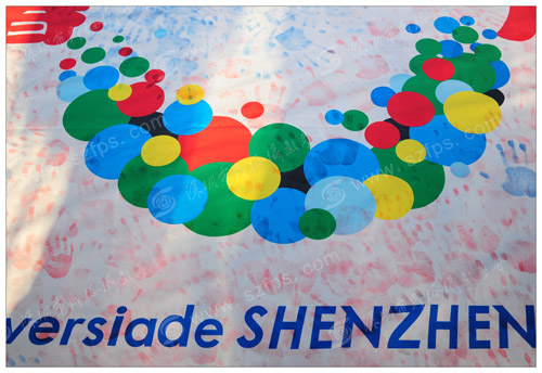 晚会现场广大游客与完美公司举行了“万人争当大运会义务志愿者”活动,景区内近万名游客与深圳完美公司5000员工,打出了“迎大运,万人手印”、“支持大运,手有余香,爱深圳,爱大运”的响亮口号,大家将五彩手印印在白色志愿布上,我会刘对现会长,和会员刘振华、范立民、陈兰凤、颜宗森、陈玲共同记录了万人渴望争当大运会义务志愿者的诚挚热情。