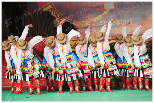 送走2009,迎来2010,元旦假期第一天,锦绣中华•民俗村里游人如织、喜庆热闹。“篝火跳月派对夜,夜光灯彩大巡游”精彩纷呈,美轮美奂。激情似火的篝火跳月狂欢让现场的气氛到达最高潮,所有游客围绕熊熊燃烧的篝火欢快舞蹈、尽情欢呼。为答谢2009年深圳对甘南地震灾区的无私援助,感恩深圳人民,当晚甘南藏族自治州组织著名的“九色香巴拉”歌舞团在景区百艺广场上演了精彩大型的民族原生态晚会《神秘的香巴拉》,为深圳人民送上了2010年的第一份深情祝福。60多名藏族演员为深圳市民带来了十余个具有甘南藏民族特色的精品歌舞节目,用歌舞唱响了藏深一家亲的深厚友谊。