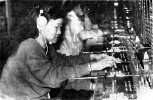 1992年3月7日,深圳市邮电系统青工新秀在接线。