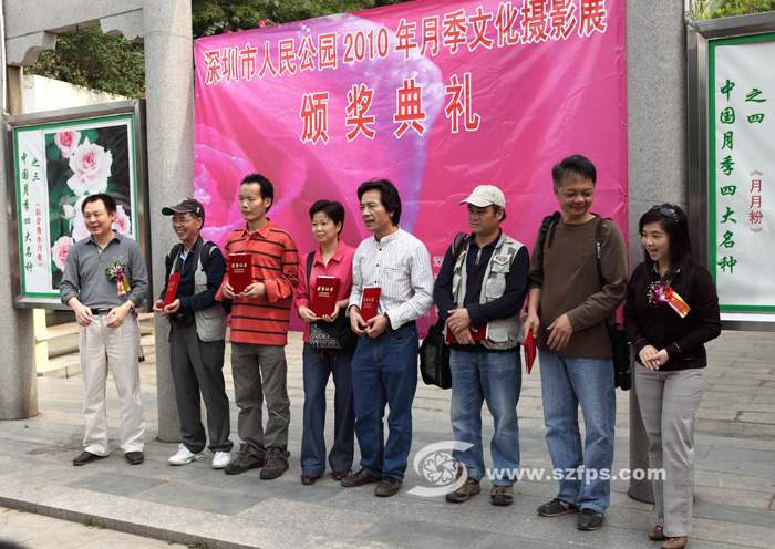 现场嘉宾一一为获奖者颁奖,颁奖典礼活动结束后,由深圳市民俗摄影学会组织了影友在月季园进行人像、月季花摄影采风,现场气氛热烈。
