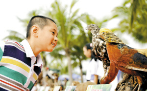 两只红腹锦鸡标本,吸引了小朋友的目光。深圳昨日启动的“爱鸟周”宣传活动,
