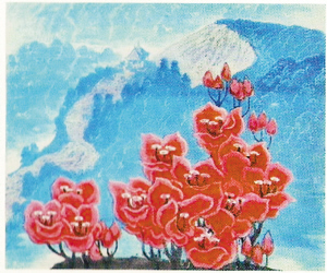 值得一提的是,在《三花烂漫》中,常桂林还尝试了“一画多色”的拓印法,即用同一套版拓印出不同色调的作品,以适应不同社会人群的需求,他认为这是推动版画作品产业化的重要举措。其实近三十年来,常桂林每次技法的创新都推动着创作的进步。早在1982年他就提出并践行“套色版画一次刻印法”,创作出《雪花飘飘》、《涉》等佳作,1983年他又进行丝网版画加网感光法实践和创作,在全国属于领先水平。