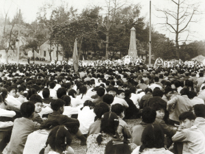位于原宝安县人民广场的革命烈士纪念碑。(何煌友 摄于1978年4月5日)