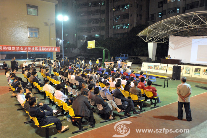 2009年4月9日19时,由深圳龙光文化馆、深圳龙光社区主办,深圳市民俗摄影学会承办的以“学习摄影艺术 留住瞬间精彩”为主题的摄影知识讲座在深圳市龙光社区篮球场拉开帷幕。