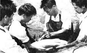 1987年5月7日,南头淡水鱼类良种繁殖场工人给种鱼注射疫苗。王遇新 王叙照