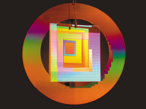 “这个是我,只不过比现在多了点头发。”迪特·容俏皮地指着其中一件作品告诉记者。那是他25年前创作的作品,镜片内是他25年前的三维肖像,他手中拿着一个三棱镜,观众左右移动,居然还能看到三棱镜反射的不同图景。“35年前,当我第一次接触全息术,我吃惊地说不出话。然后我缠着柏林科学家们教我,他们指着我鼻子说:这个人是个疯子!”如今已是白发苍苍的迪特·容谈起往事,淡定从容。后来他去到美国,学习到了这门技术,从此把光束当画笔,以棱镜、玻璃、屏幕为画布,通过改变圆、三角、四边与原始颜色的组合,创造出一帧帧流光溢彩的幻境。