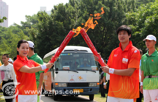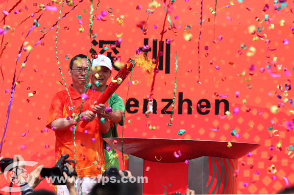 9:24,护卫队员用火种点燃深圳的第一支火炬
