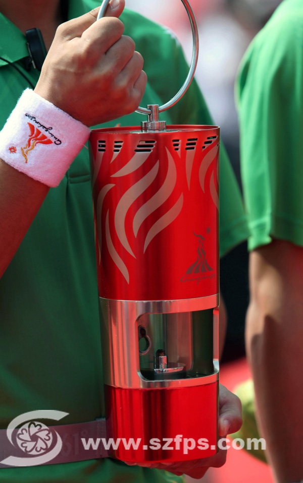 18日上午的莲花山成了喜庆的海洋。9点25分,多哈亚运会射击冠军刘刚从深圳市长许勤手中接过第16届广州亚运会火炬,开始了圣火在深圳的传递。11点5分,两名圣火护卫队员从由末棒火炬手南方科技大学校长朱清时点燃的火盆中引回火种,同时熄灭圣火盆。至此,第16届亚运会火炬传递深圳站圆满结束。