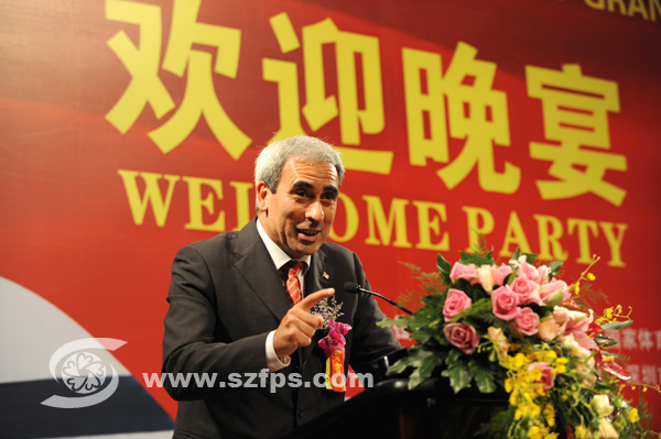 10月22日晚上7点,2010F1摩托艇世界锦标赛中国深圳大奖赛在大中华喜来登大酒店举办了欢迎晚宴,副市长吴以环、副秘书长黄国强等市政府领导、国际摩联主席丘里先生、国际摩联F1委员会推广人尼克鲁先生以及深圳市天荣投资有限公司董事局主席李浩杰、中国天荣F1摩托艇招商银行队领队陈焕明均出席了宴会。
