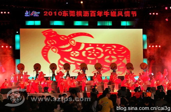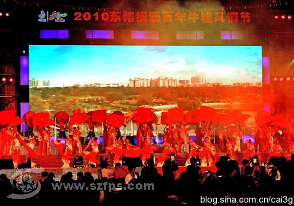 11月6日晚八点,横沥文化广场举行2010牛墟风情节盛大开幕式晚会,为期3天的风情节在晚会开场节目《鼓舞金牛》昂扬的鼓声中拉开帷幕。能容纳万人的文化广场上座无虚席,观众除了横沥镇本地市民和众多企业的新莞人,还有来自市区及周边镇街的市民。