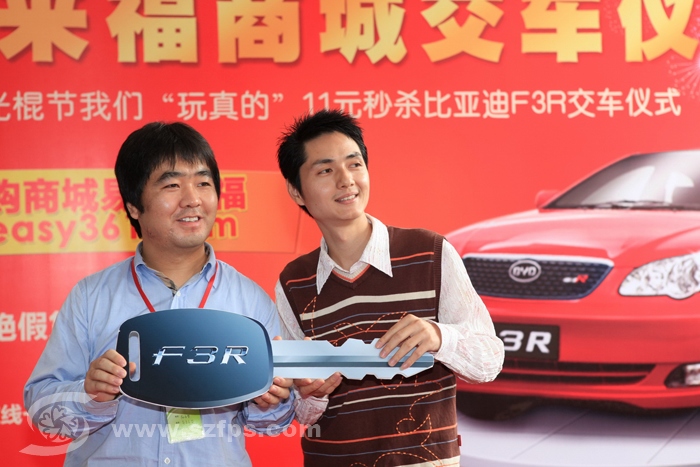 “秒杀帝”拿到美驹比亚迪F3R轿车笑逐颜开