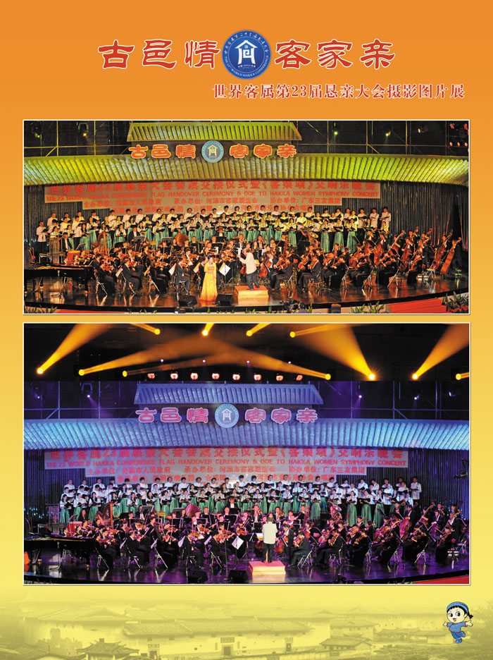 展览图片主要记录了中国河源世界客属第二十三届恳亲大会盛况,“世客会”是目前世界上联系最广、影响最大的华人盛会之一,被称为客家人的“奥运会”。 第23届“世客会”吸引了来自全世界20多个国家和地区的6000多位客属代表和嘉宾来此寻根问祖、共叙乡情。在这异彩焕发的万绿湖畔、古邑城间,深圳文艺家们携特区风貌之客属风彩,与数千余名来自全球各国乡亲一道,欢聚一堂,喜叙乡情。政要侨领毕至,老耄幼齿咸来;歌劲舞翩,传承客家千年根脉;亲郁情浓,诉尽全球亿万客缘。