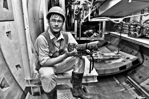 当年9月,钟致棠踏上了自己的“大运地铁拍摄之旅”,“在几年的拍摄过程中有很多人问我,拍这个题材究竟是工作需要,还是地铁公司专门‘雇’我去的?我的回答是,我是自主自愿去拍的,完全出于个人专业志趣。”钟致棠说,定下这个拍摄题材后,他发现“里面大有内容可拍”,无论是挖土机在工地上缓缓行驶,还是工地上由黄土、机器和工人们共同拼凑起来的丰富色彩,或是地下作业的工人们与巨型挖掘机的强烈对比,以及工人们大汗淋漓地施工作业或休息时露出爽朗笑容,都可以成为镜头下充满视觉冲击力的影像。
