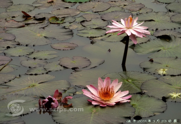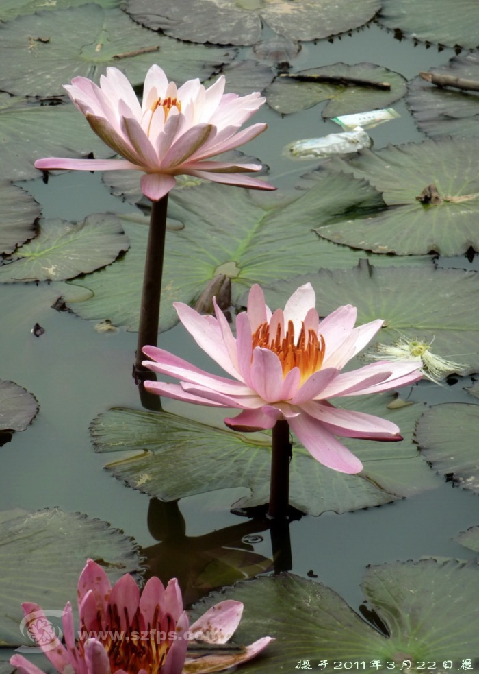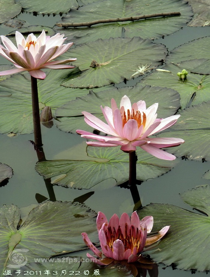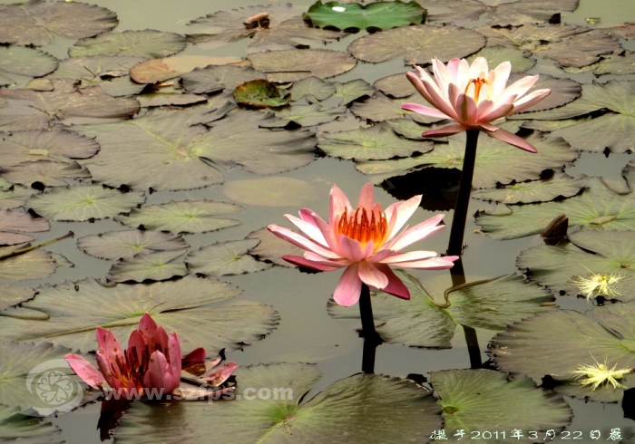 22日早晨,路过莲花山人工湖东北角,看到已经开了一段时间的3朵睡莲中,一朵有些颓态,另外2株亭亭玉立傲然怒放很是娇美。我停下脚步拿出随身携带的卡片机拍了几张,当时只是想留作将来的对比和纪念。