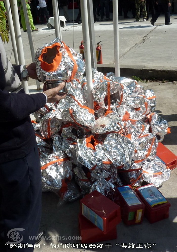 3月最后一天的下午2点半,深圳广电大厦进行消防演习。其实,有些人还不到2点就已经开始准备了,他们早早打开自己的一次性使用的消防呼吸器,琢磨着如何佩戴。因为配发的呼吸器去年7月就过期了,所以试戴并不会造成浪费。戴过的人说,呼吸器里面的气味的确不好闻,但有些人还是愿意多戴一会儿,拍个照、发个围脖做个纪念。